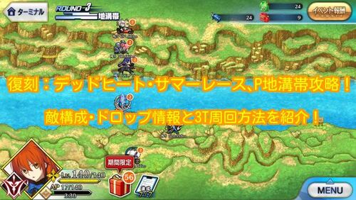 この記事では『FGO』の期間限定イベント、「デッドヒート・サマーレース!~夢と希望のイシュタルカップ2017~ ライト版」のP地溝帯の敵構成・ドロップ情報と3T周回方法を紹介します。 ◆1.P地溝帯は常にArts強化バフを付与される ◆2.P地溝帯 フルスロットル級 2…